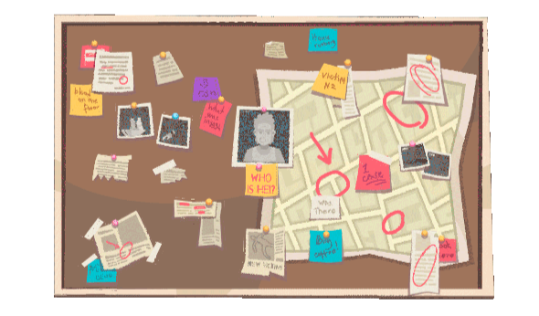 Parcourez les indices et découvrez en d'autres sur les réseaux sociaux des suspects et des sites internet liés à votre enquête.